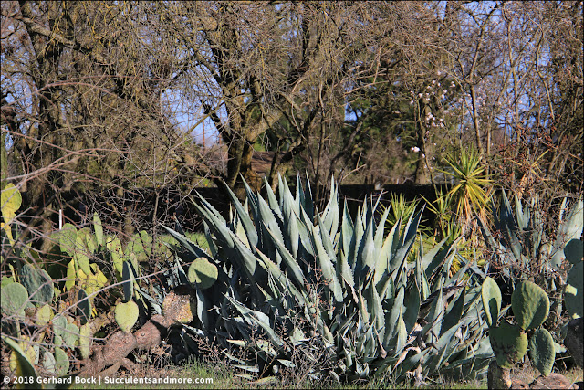 I’m not a fan of pineappling agaves but hey, it’s not my call. Look at the sheer number of pups, though. And there are many more on the other side.