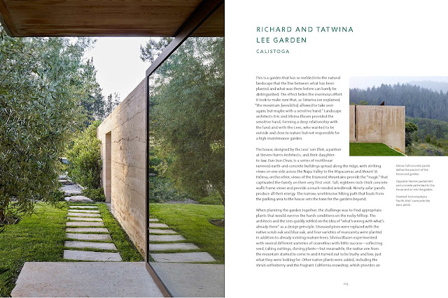 Private Gardens of the Bay Area (9½×12½ inches, 256 pages) portrays 39 gardens in four distinct geographic areas: the Peninsula to the south of San Francisco, San Francisco proper, the East Bay (Berkeley, Oakland and points east), and Marin/Sonoma/Napa counties to the north. Each area has unique microclimates, allowing more tender and tropical plants to thrive closer to the water while the counties to the north, especially the Wine Country, are subject to wider temperature fluctuations.