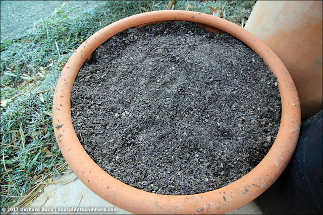 Having killed more dudleyas than I care to remember, I stopped trying for a number of years. However, at my early December outing to Annie’s Annuals in Richmond I was so smitten by their collection of dudleyas that I decided to throw caution to the wind. After initially putting five or six dudleyas in my cart, I managed to rein myself in a bit and ended up with three: Dudleya farinosa, Dudleya hassei, and Dudleya palmeri. My decision was based in part on the unexpected success I’ve had this year keeping alive a Dudleya brittonii I bought in March at Poot’s Cactus Nursery. Either my luck has turned, or I simply know more about the idiosyncrasies of dudleyas than before.